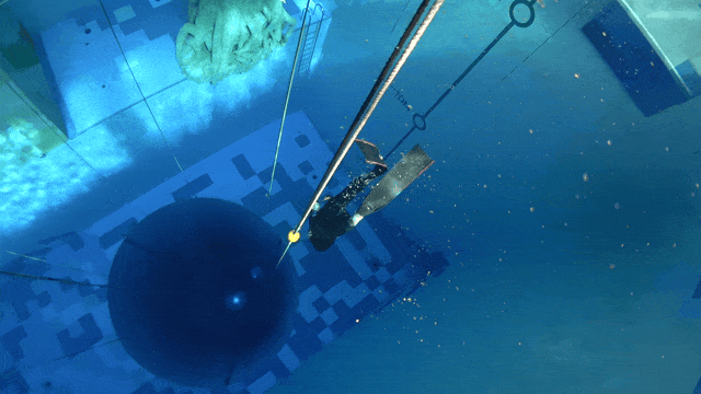 The first warm-up in the deep tank was a 25m FIM dive, which took 1 minute and 58 seconds. Thanks to the thorough warm-up beforehand, the dive felt comfortable and effortless. Afterward, I did a 36m FIM dive, briefly hanging at the bottom before ascending.